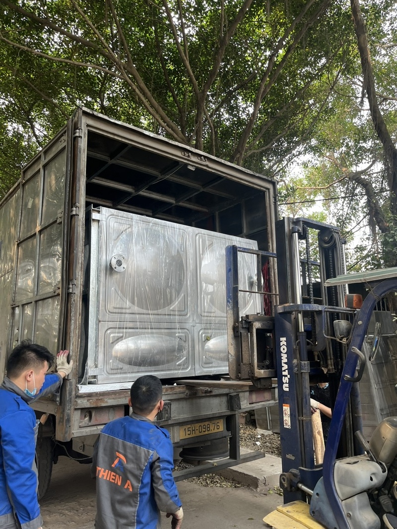 Với kết cấu lắp ghép từ các tấm panel nhỏ, bồn inox có thể được vận chuyển và lắp đặt dễ dàng ngay cả ở những khu vực có địa hình phức tạp, hẻm nhỏ hoặc các tòa nhà cao tầng. Đây là lợi thế lớn so với bồn đúc nguyên khối, vốn đòi hỏi không gian rộng và thiết bị nâng hạ chuyên dụng.